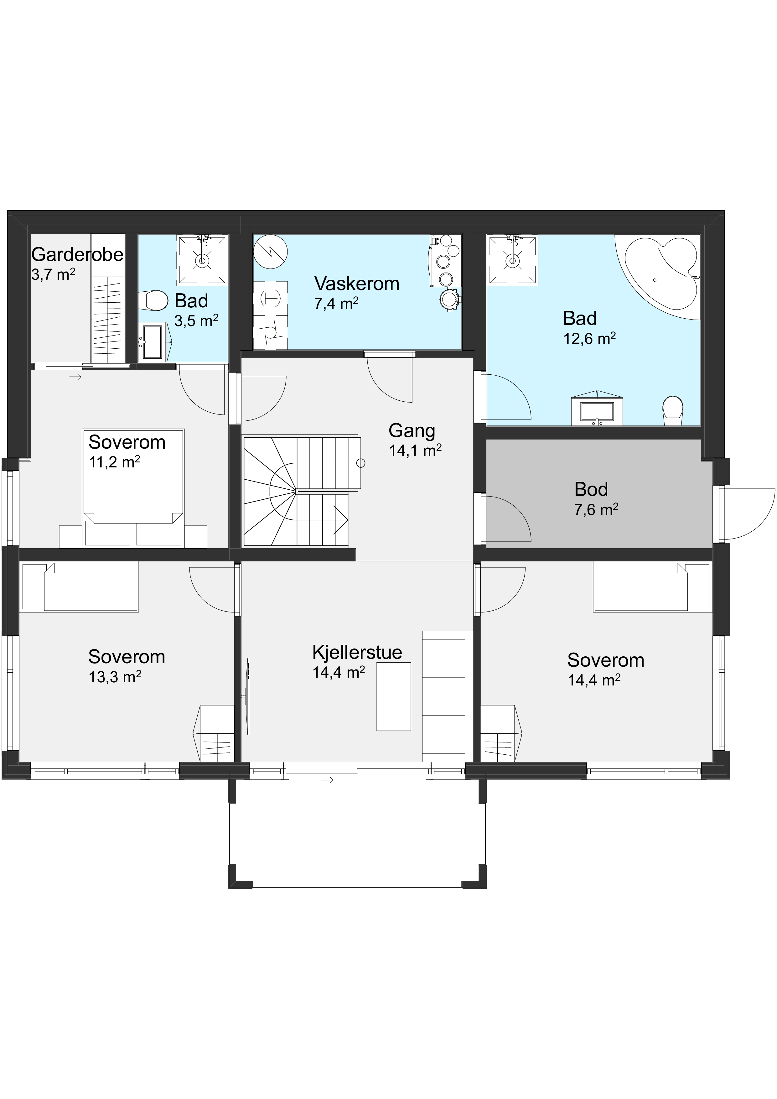 Boligen kan bygges med eller uten sidefløyer, noe som gir deg stor frihet til å forme hjemmet over tid. Kanskje du planlegger én fløy nå, og en annen senere – etter hvert som familien vokser og behovene endrer seg. Modulene kan inneholde alt fra ekstra stuer og soverom til egne innganger, utleiedeler eller en romslig garasje med direkte adkomst til boligen. Uansett hva du drømmer om, kan Borgund tilpasses dine visjoner – enten du vil ha en herskapelig bolig med klare linjer eller et moderne familiehjem med mange soner og funksjoner.