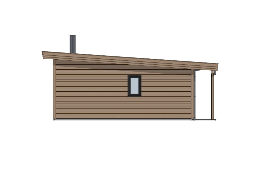 Du kommer inn i hytten gjennom et overbygd inngangsparti som skjermer for vær og vind. Vindfanget leder deg videre til en praktisk bod og til allrommet, en innholdsrik stue-/kjøkkenløsning hvor skråtak gir følelsen av et luftig rom med god plass. Her har du en egen kjøkkenkrok, en spise-sone og nok rom til en sittegruppe med sofa og gode lenestoler foran peisen. Vi har plassert vinduer og verandadører i glass i stue-/kjøkkenavdelingen for at du kan nyte utsikten og naturen utenfor gjennom alle årets sesonger. Den overbygde uteplassen gir deg muligheten for fine stunder ute i frisk luft. Fra allrommet kan du gå videre til en gang som leder deg til hyttens to soverom og et praktisk baderom.
